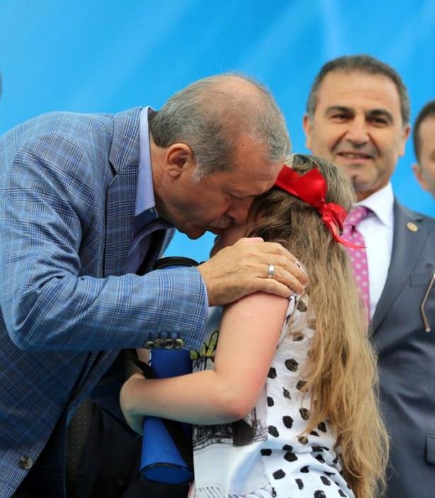 Erdoğan, program sonunda kendisine sevgi gösterisinde bulunan bir kız çocuğunu yanına çağırarak sevdi.