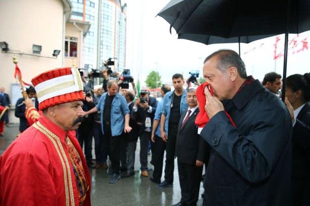 Sivas Belediyesini ziyaret eden Cumhurbaşkanı Recep Tayyip Erdoğan, kendisine hediye edilen Türk bayrağını öperek teslim aldı.