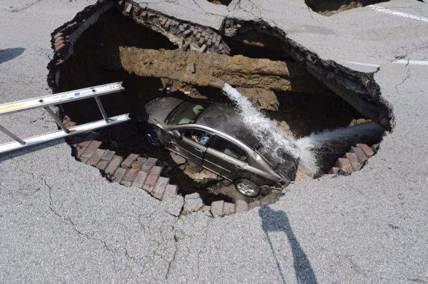 Ohio'da yerin yarılması ile ortaya çıkan su kanalında kurtarılmayı bekleyen Pamela Knox.