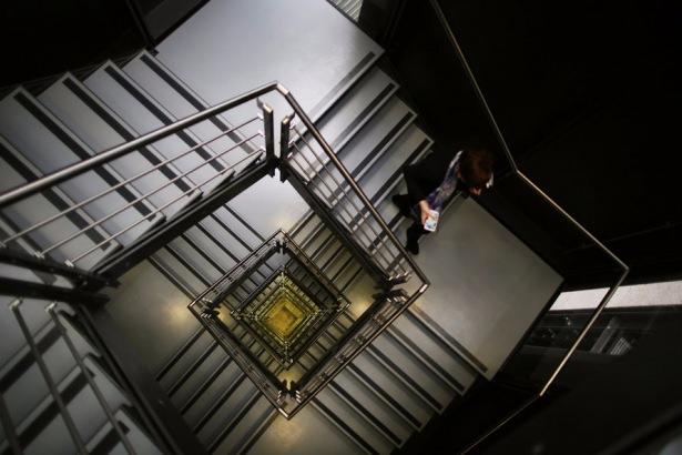 Ünlü British Museum'da yerin 20 metre atlına yapılmış sergi salonuna inen bir ziyaretçi.