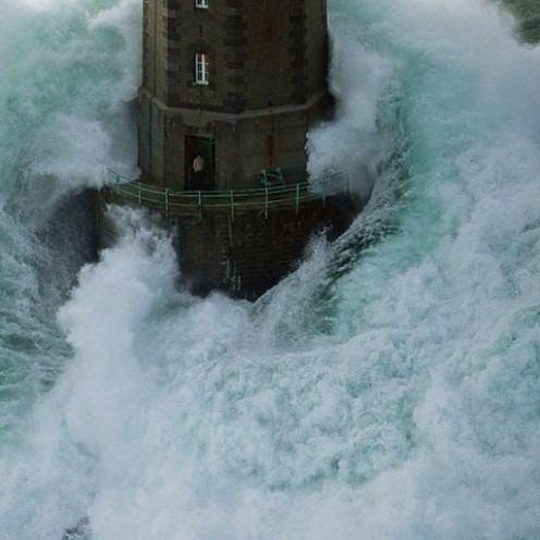 Fransada’ki Mare denizfeneri görevlisini cesareti akıl alır gibi değil, o dev dalgalar arasında soğukkanlı duruşu dikkat çekiyor.