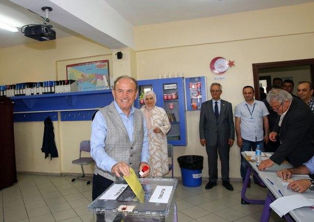 Topbaş, eşi Özleyiş Topbaş ile oy kullanacakları Şenlikköy Murat Kölük İlköğretim Okulu'na geldi. Vatandaşlarla selamlaşan Topbaş ve eşi, daha sonra oy kullanacağı "1316" numaralı sandığa giderek, burada bir süre bekledi. Kendisine verilen oy pusulası ve mühürle kabine giren Topbaş, daha sonra "bismillah" diyerek oy pusulasını sandığa attı.