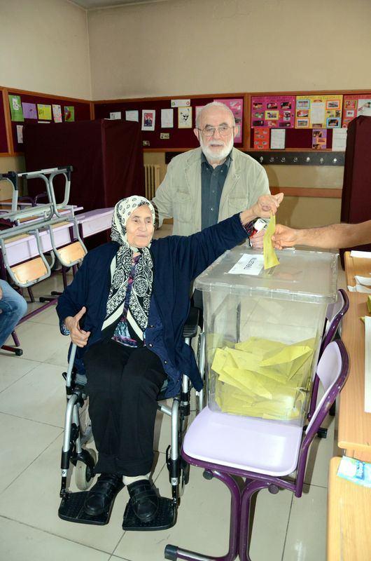 Zonguldak'ta 20 yıl önce oy kullanmaya giderken geçirdiği trafik kazası sonucu felç olan 73 yaşındaki Ayşe Çiftçi, oyunu kullandı