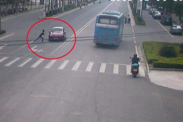 Arabanın önüne atlayarak aracın kendisine çarpmasını sağlayan adam...