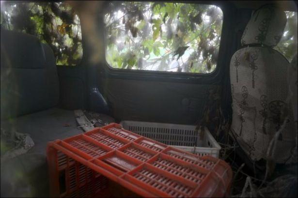 Yıllar önce otoparka bırakılan araba sarmaşıklarla kaplanınca ilgi odağı oldu.