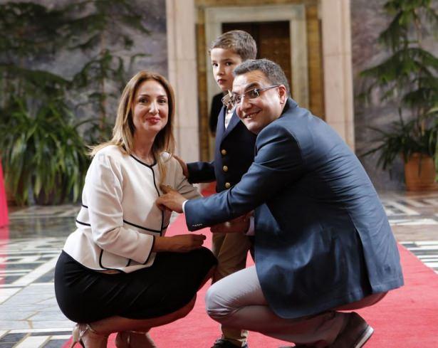 Cumhuriyet Halk Partisi Ankara Milletvekili Aylin Nazlıaka (solda), eşi İzzet Nazlıaka (sağda) ve oğlu Demir (ortada) ile beraber TBMM'ye gelerek kayıt oldu