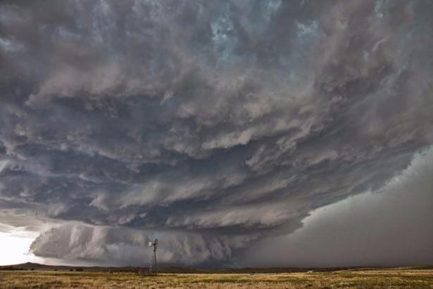 ABD'nin Wyoming eyaletinde meydana gelen supercell (Süper hücre) adı verilen yıldırımlı bir fırtınaya ait bulutlar. Dikey rüzgarların fazla olduğu kuvvetli bir gök gürültülü fırtına bulutlarıdır.