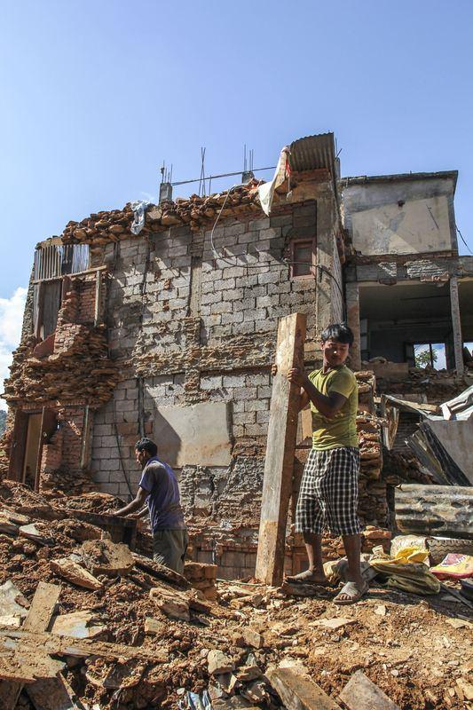 En fazla yıkıma uğrayan yerlerin başında gelen Sindhupalchok'taki depremzedeler, enkaz yığınlarını kazma, kürek ve elleriyle kazarak göçük altında kalan eşyalarını toplamaya çalışıyor.