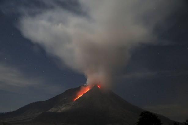 Endonezya'nın Kuzey Sumatra Adası'ndaki 2 bin 600 metre yüksekliğindeki Sinabung Yanardağı'nda patlamalar devam ediyor.