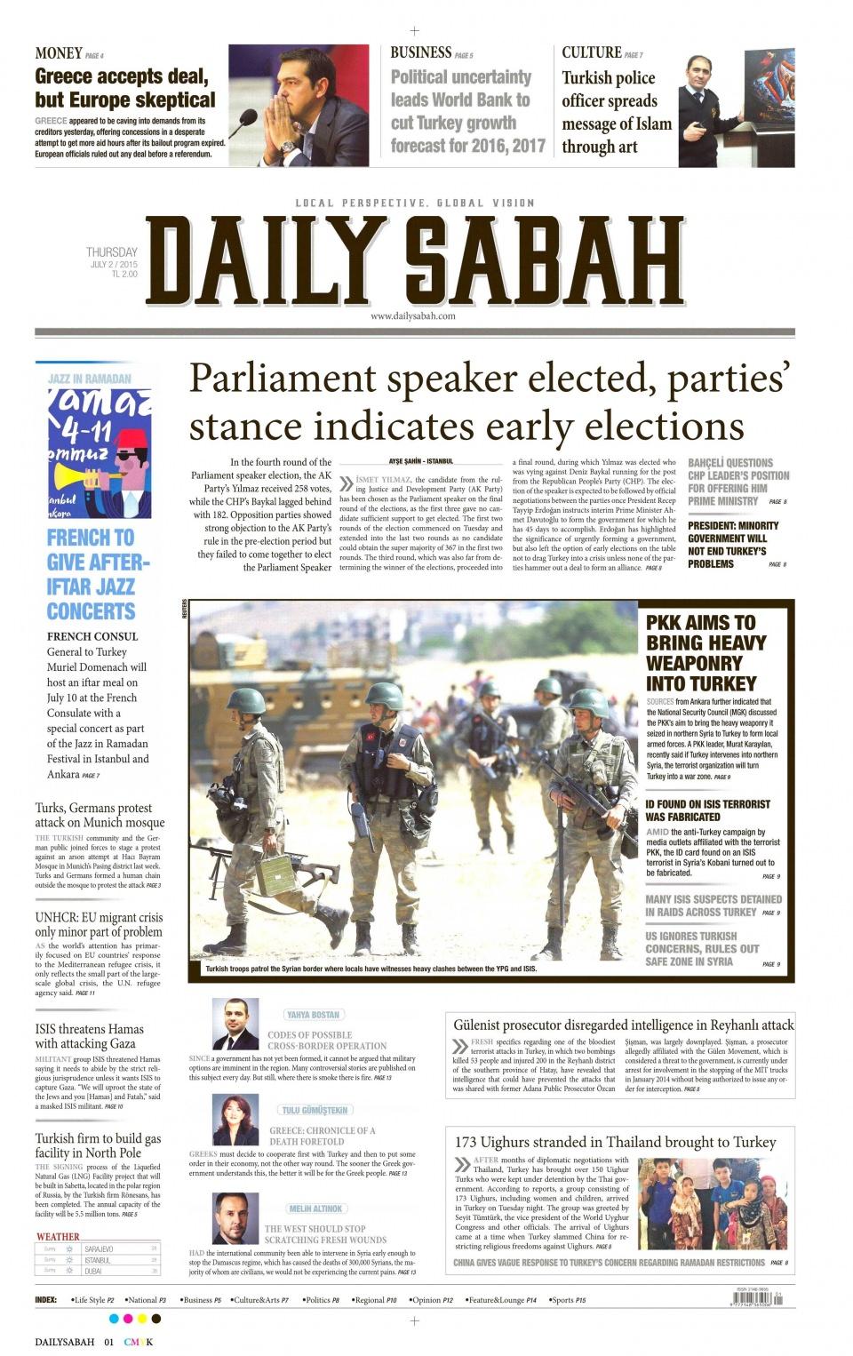 2 Temmuz 2015 gazete manşetleri
