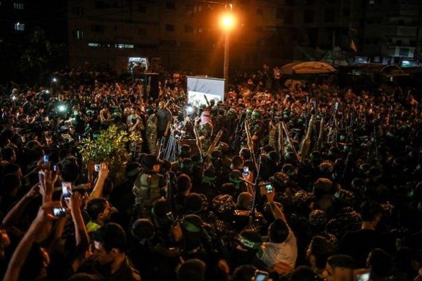 Kassam Tugayları'nın yüzlerce mensubu, askeri üniformalar ve silahlarıyla Gazze caddelerinde dolaştı.