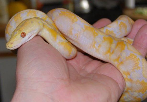 Tipik bir albino piton gibi görünse de lavanta rengi çizgilere ve yakut rengi kırmızı gözlere sahip. Lavanta rengi albino pitonu ayrıca yüksek bir bakım masrafına da sahip.