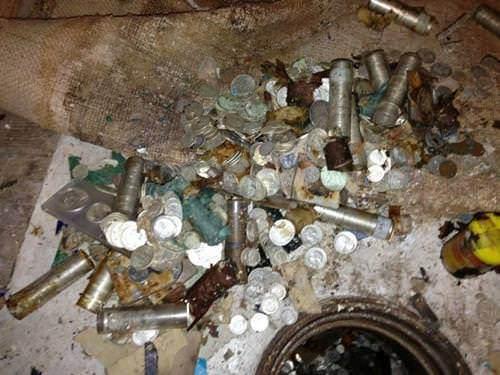 Ayrıca plastik boruların içinde bir ton bozuk para vardı fakat bunlardan bazıları kağıttan borulara sarılmıştı. (Maalesef)