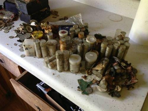 Define avcısı son olarak keşfettiği hazinenin hepsini masanın üstüne yığdı. Buldukları hayret verici değil mi?