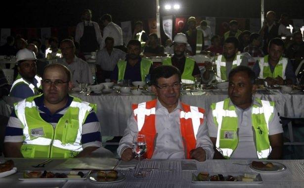 Davutoğlu, “Bugün 3. Köprüde iftarda beraberiz. İnşaatın yüzde 70’i tamamlandı bu vesile ile köprü üzerinde işçilerle birlikte iftar etmekten mutluluk duyuyorum” dedi.