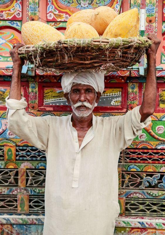 Pakistan'ın başkenti İslamabad'ın sebze-meyve halindeki kavun pazarında hamallık yaparak geçimini sağlamaya çalışan işçiler zor şartlarda ekmek paralarını kazanmaya gayret ediyor.
