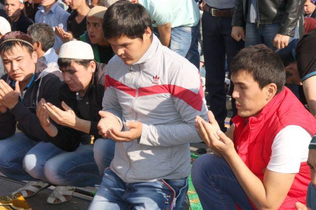 Rusya'nın başkenti Moskova'da yaşayan Müslümanlar, bayram namazı için camileri doldurdu. Camilere sığmayan Müslümanlar, cadde ve sokaklara taştı.
