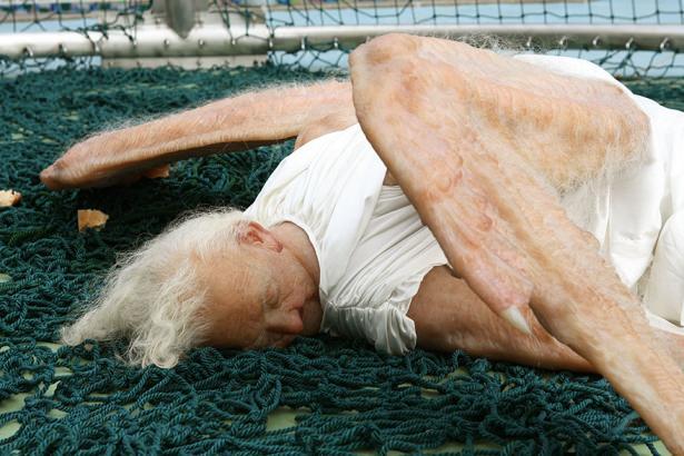 Melek isimli heykelin yapımında silika, elyaf, paslanmaz çelik ve tel örgü kullanılmış. Yaşlı bir kadını melek olarak yansıttıkları heykelde dikkat çeken detaylardan biri de kanatlarının tüysüz, yüzündeki ifadenin de uyku ve ölümü çağrıştırıyor olması.