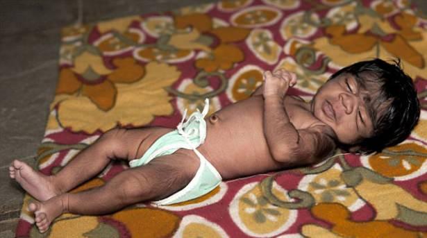 Hindistan'da Dünya'ya gelen bebeğin özellikle kolları,omuzları ve genital bölgelerinde fazlaca tüy bulunuyor.