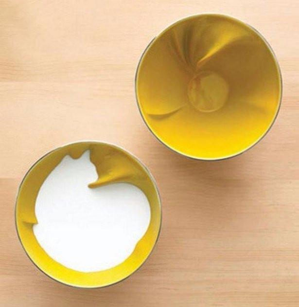İçi sıvı ile doldurulduğunda kedi silüeti oluşan kase
