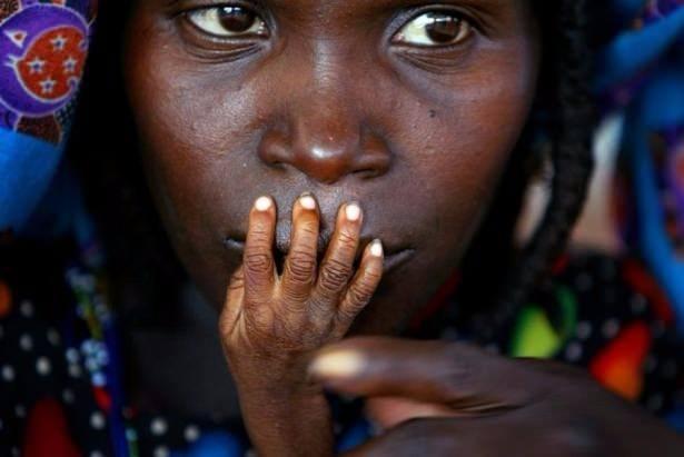1 yaşındaki Alassa Galisou eliyle annesinin dudaklarına dokunuyor. Yaşanan kuraklık sonucu bölgede gıda sıkıntısı baş göstermişti.