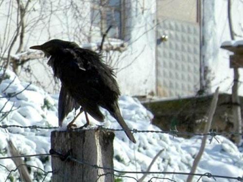 Karga konduğu çitin üzerinde dondu