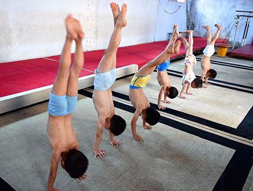 Çin'de çocuk jimnastikçiler özel okullarda sıradışı bir antrenmana tabi tutuluyor.