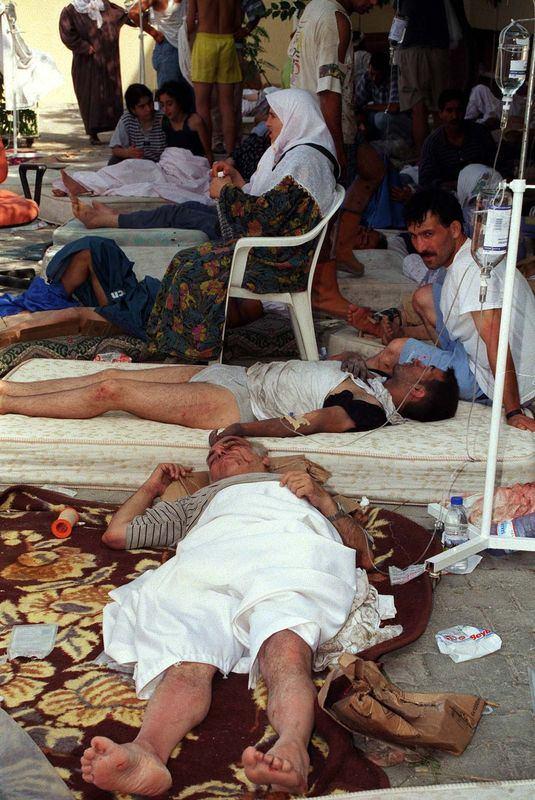 Deprem sonrası yaralananlar yoğunluk nedeniyle hastane bahçesinde tedavi görüyordu.