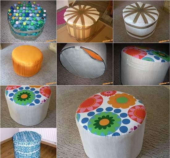 Pet şişeleri atmayın.Yeterli sayıda pet şişeyi biriktirdiğinizde tabure yapmaya başlayabilirsiniz.