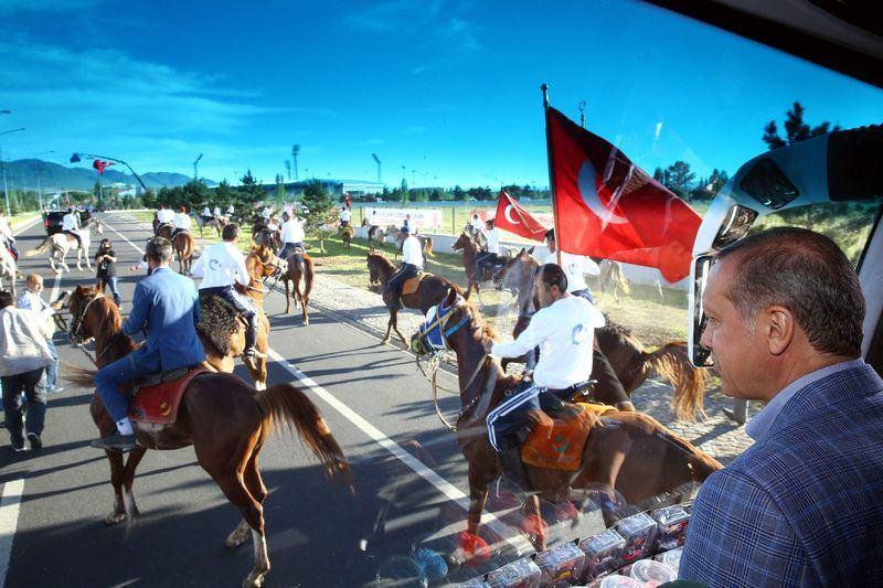 Halkla buluşması kapsamında 1 Haziran 2015'te Erzurum'a gelen Cumhurbaşkanı Erdoğan şehir girişinde atlı ciritler tarafından karşılandı.