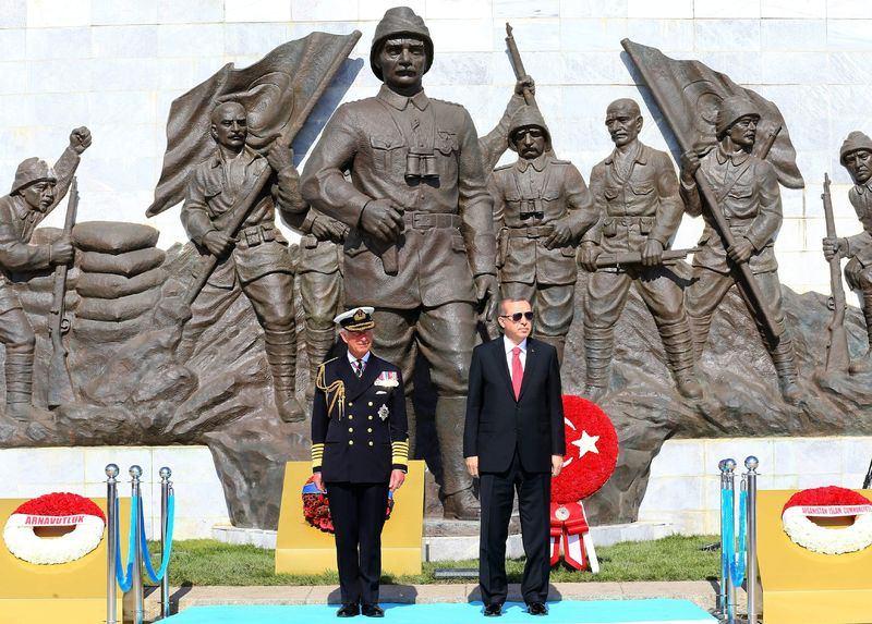 24 Nisan 2015'te düzenlenen Çanakkale Kara Savaşları'nın 100. yıldönümü dolayısıyla Gelibolu Yarımadası'nda ki Şehitler Abidesi'nde tören düzenlendi. Törene Cumhurbaşkanı Erdoğan (sağda) ve Birleşik Krallık Galler Prensi Charles de katıldı.