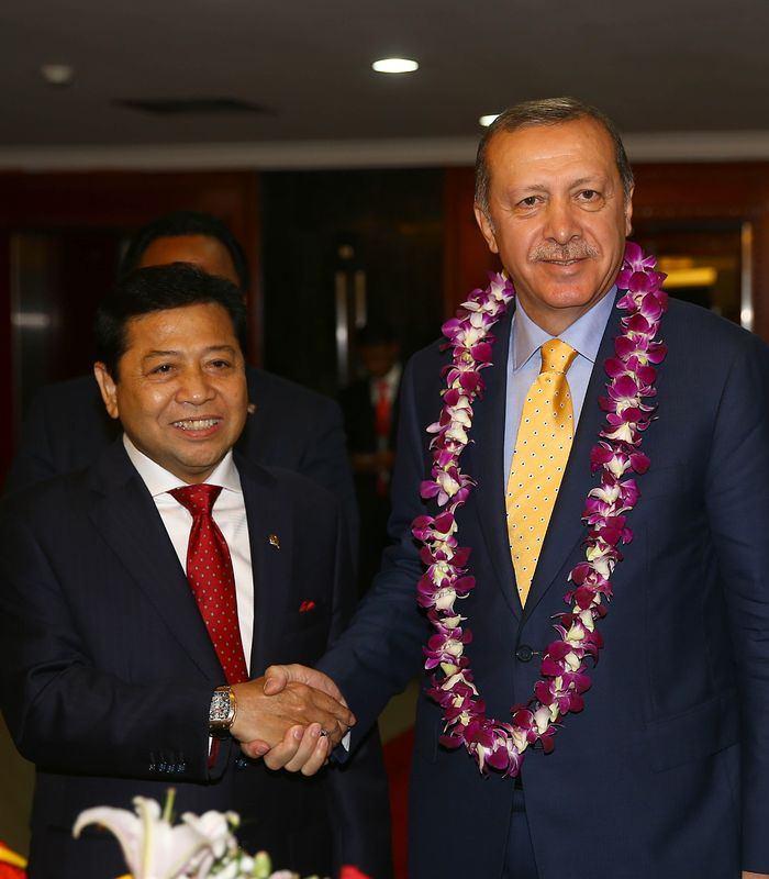 Cumhurbaşkanı Erdoğan, Endonezya'nın başkenti Cakarta'ta 31 Temmuz 2015'te Endonezya Temsilciler Meclisi Başkanı Setya Novanto'yu (solda) ziyaret etti.