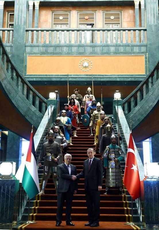 Cumhurbaşkanı Erdoğan, 12 Ocak 2015'te Filistin Devlet Başkanı Mahmud Abbas'ı resmi törenle karşıladı. Törende, ilk kez tarihteki 16 Türk devletinin askeri kıyafetlerini giyen askerler de yer aldı.