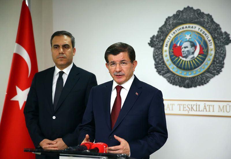 Brifing aldığı MİT’ten de ilk canlı yayınla basın toplantısını 5 Kasım 2014'te gerçekleştiren Davutoğlu'na MİT Müsteşarı Hakan Fidan (solda) eşlik etti.