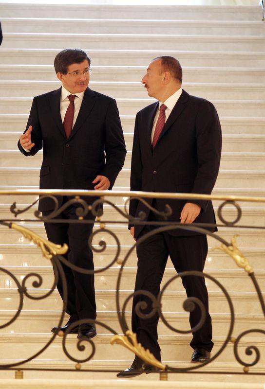 Yurt dışında yoğun bir diplomasi faaliyeti yürüten Davutoğlu, Başbakan olarak 19 Eylül 2014 tarihinde resmi ziyaret için Azerbaycan'a gitti. Davutoğlu, Cumhurbaşkanı İlham Aliyev (sağda) ile bir araya geldi.