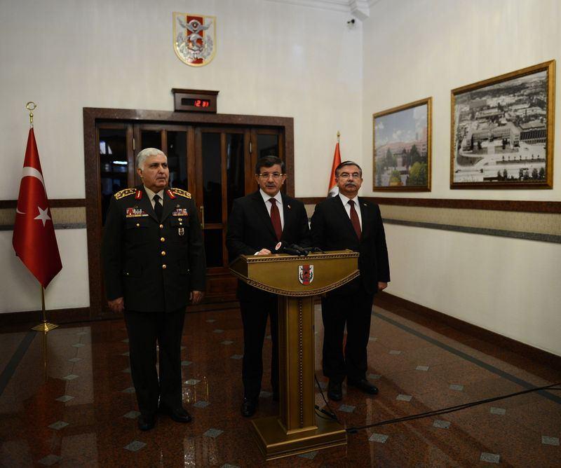 Başbakan Davutoğlu, 22 Şubat 2015'te, Suriye sınırında Süleyman Şah Türbesi'nde bulunan 38 personelin Türkiye'ye getirilmesi, Süleyman Şah ve iki muhafızının naaşı ile değerli eşyaların Suriye'nin Eşme köyüne taşınmasını sağlamak için yapılan,"Şah Fırat" adı verilen operasyonun sevk ve idaresini Genelkurmay Karargahı'ndan bizzat takip etti. Operasyonun ardından Başbakan Ahmet Davutoğlu (ortada), Süleyman Şah Saygı Karakolu'nun tahliyesine ilişkin basın toplantısı düzenledi. Basın toplantısına, Genelkurmay Başkanı Orgeneral Necdet Özel (solda) ve Milli Savunma Bakanı İsmet Yılmaz (sağda) da katıldı.