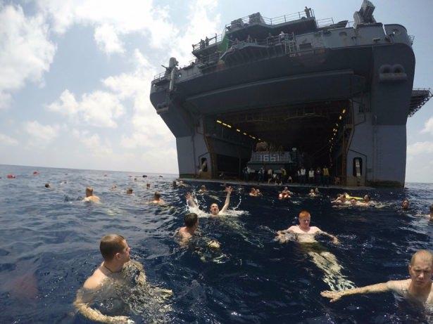 Aden Körfezinde serinlemeye çalışan Amerikan uçak gemisi askerleri...