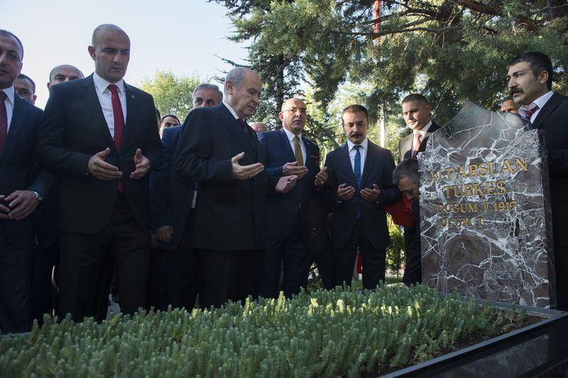 MHP Lideri Bahçeli, namaz sonrası Alparslan Türkeş'in kabrini ziyaret etti.