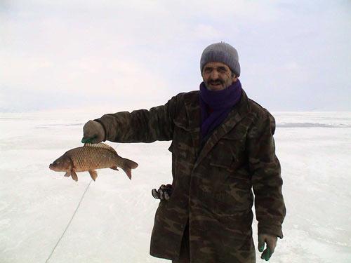 Buz kaplı Çıldır Gölü'nde balık avı/video