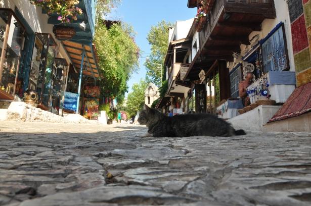 Kaş'ın renkli sokağı ise Uzun Çarşı... Gündüz sıcaktan dolayı kedilerin uyuma noktaları olsa da geceleri hareketlilik bir başka oluyor...Çarşıda karşılıklı şık butikler, hediyelik eşya dükkanları, bahçe içi restoranlar ve tur dükkanları mevcut.