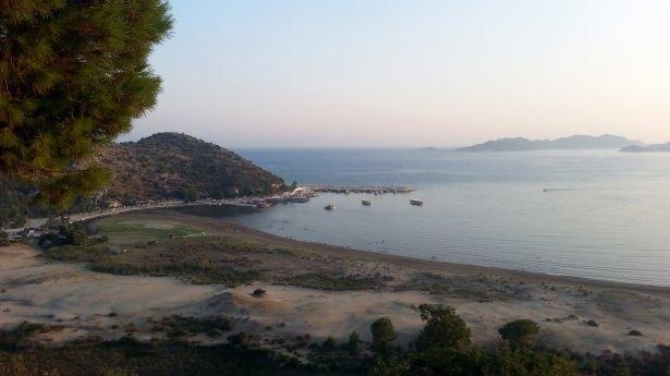 Çayağzı uzun plajı ve tura çıkmaya hazır limana demirlemiş teknelerle dolu...