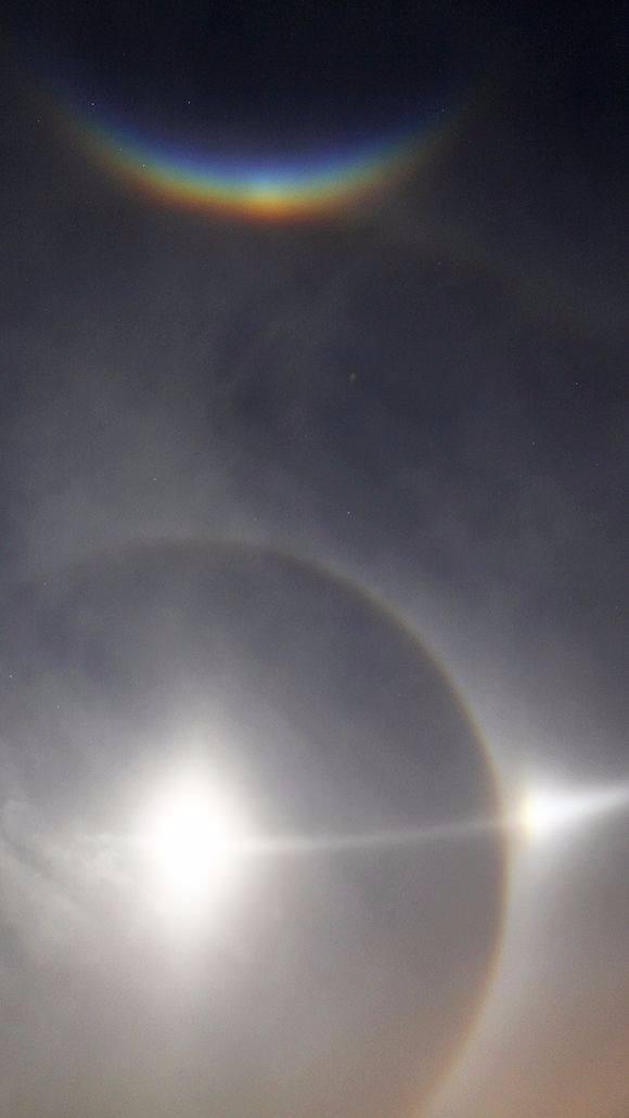 Cirrostratus ismi verilen bulutlardaki buz kristallerinin oluşturduğu görüntü.