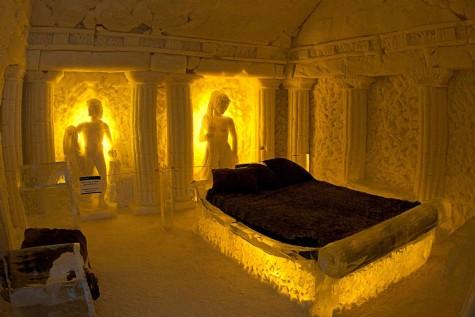 Duvarların ortalama 1.2 metre kalınlığında olduğu otelde, mobilyalar, bardaklar ve tabaklar da buzdan yapılma.