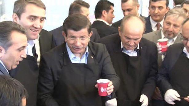 Başbakan Ahmet Davutoğlu, İstanbul Madeni Eşya Sanatkarları Sanayi Sitesi (İMES) Camii'nde vatandaşlara aşure dağıttı.