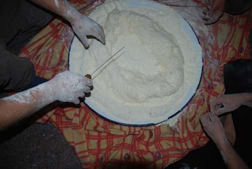 Çekilen pişmaniye tel tel olduktan sonra tepsi üzerine bırakılarak kış ayazında soğumaya bırakılır.
