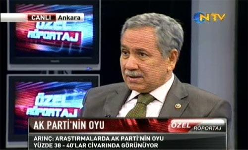 Baykal'ın AK Parti için yaptğı oy oranı düştü şeklindeki yorumları NTV'de katıldığı programda değerlendiren Bakan Bülent Arınç partisinin olası bir seçimde yüzde 40'ların altında oy almayacağını söyledi. HABERİN VİDEOSU İÇİN TIKLAYIN