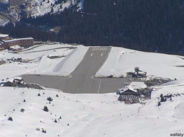 Düz herhangi bir alanın zor bulunduğu dağ kentlerine uçakla ulaşabilmek için Fransızlar çareyi yokuş aşağı bir pist inşa etmekte bulmuş.