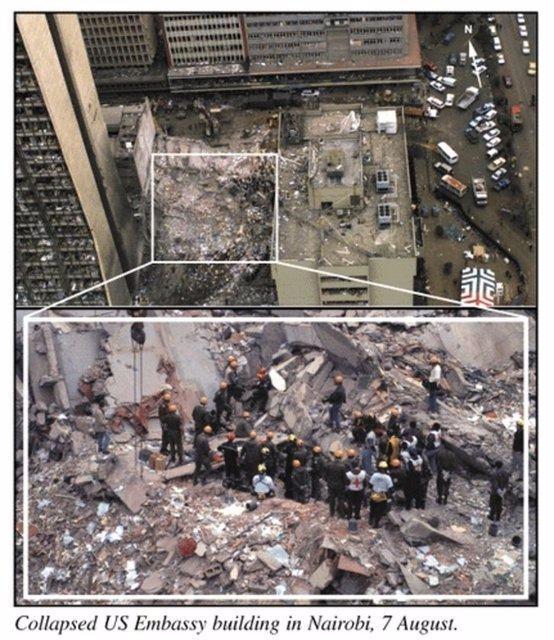 ABD askeri birliklerinin Suudi Arabistan'a gelişinin 8. yıl dönümünde, Nairobi'deki Amerikan elçiliğine bir dizi terör saldırısı düzenlenmişti. Hedef Amerikan tesisleri olsa da binlerce yaralı ve 200'ü aşkın ölüden yalnızca 12'si Amerikalı'ydı.