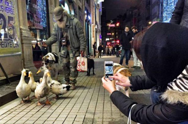 İstiklal Caddesi'nde ördek sürüsüyle gezdi