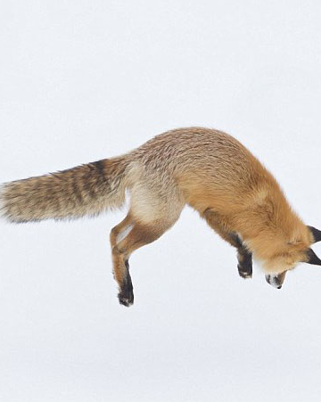 Tilki karın altında bulunan farenin sesini takip ediyor ve sıçrayıp karın altına dalıyor.